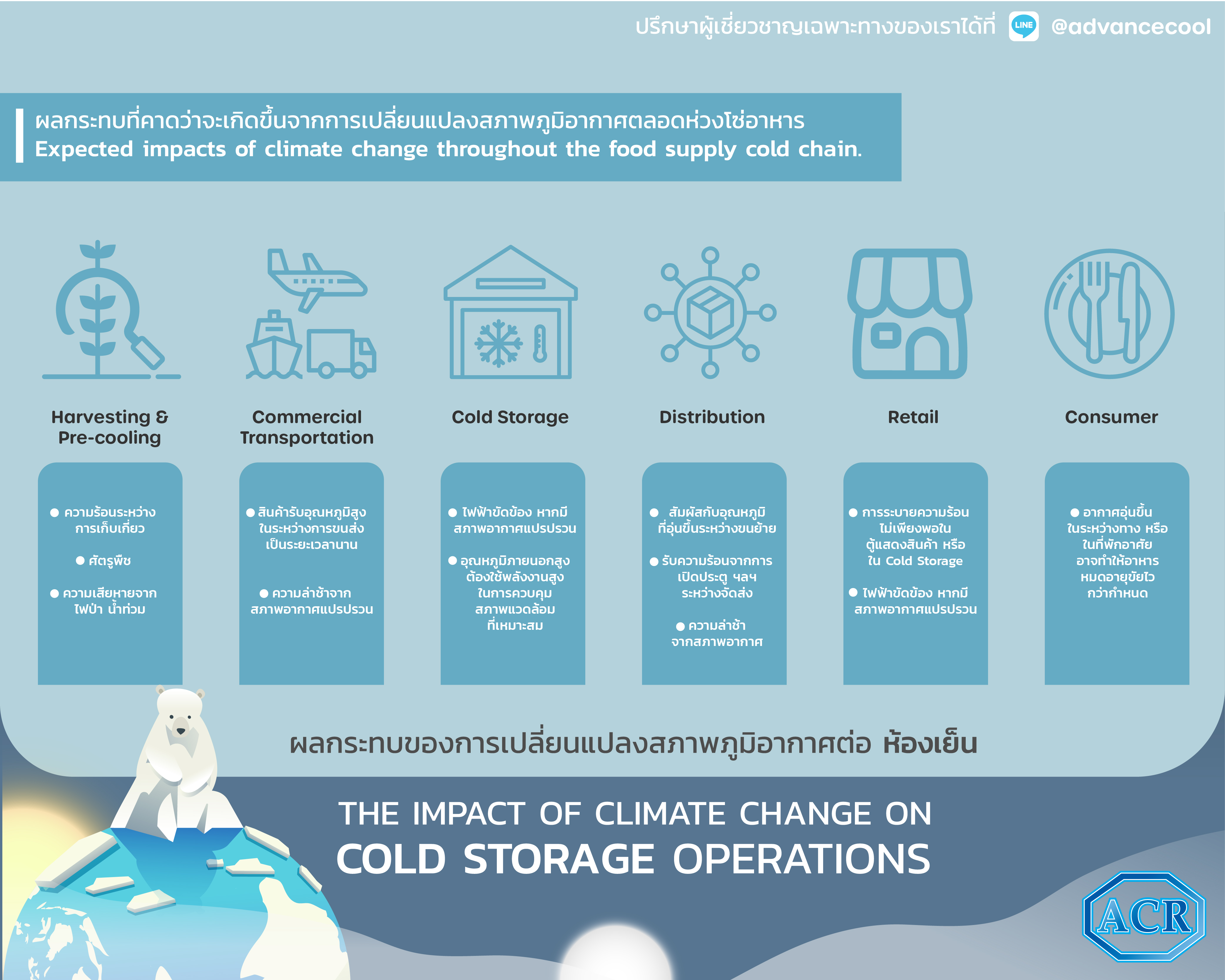 หลากหลายปัญหาในระบบทำความเย็น มักส่งผลกระทบต่อภาคส่วนการผลิตอื่นๆ และกระจายเป็นวงกว้างในระบบ Cold Chain ซึ่งเราสามารถหลีกเลี่ยงปัญหาได้ด้วยการบำรุงรักษา และตรวจสอบระบบเป็นประจำ