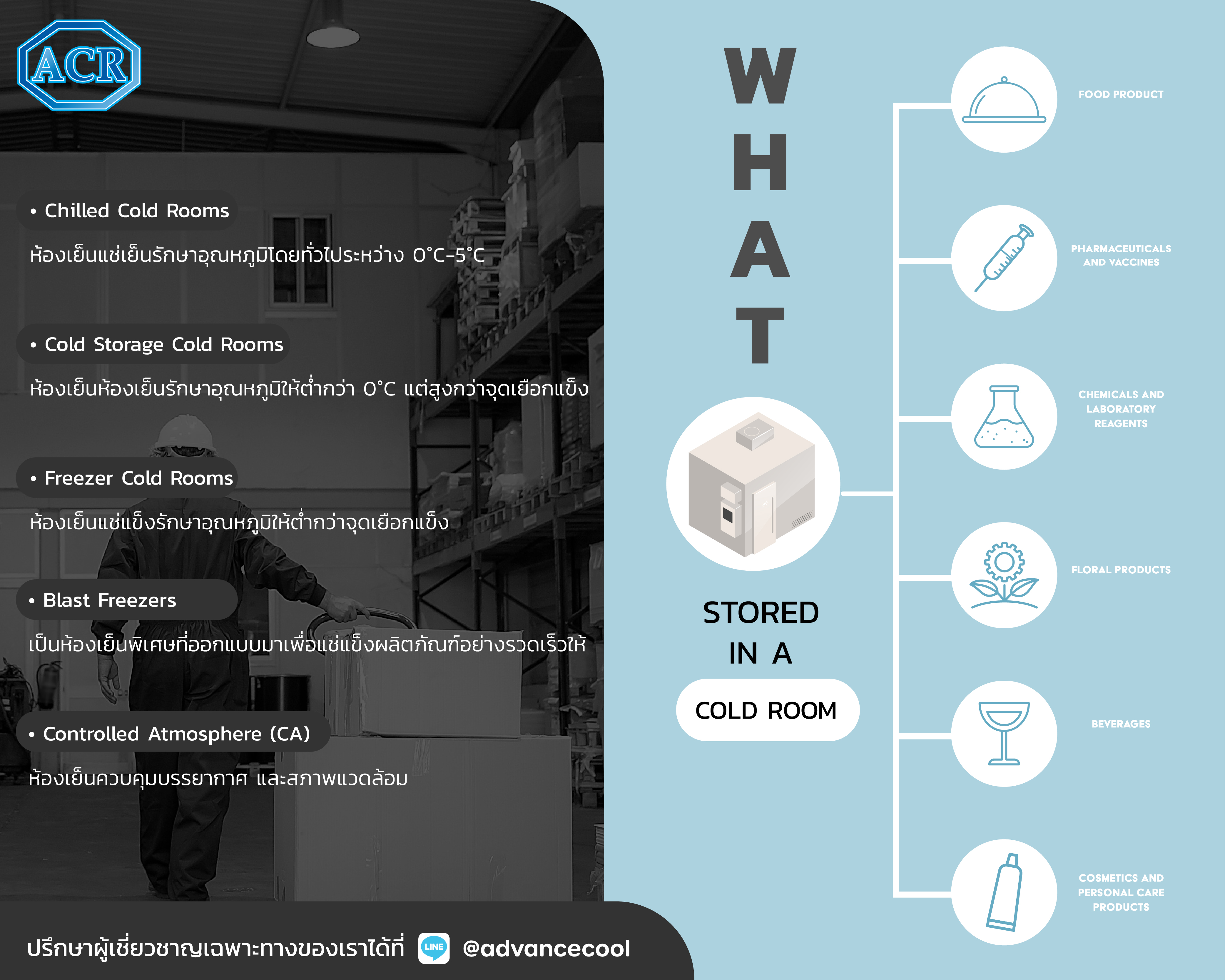 ห้องเย็น ถือเป็นเทคโนโลยีที่ช่วยในการอำนวยความสะดวกทั้งภาคอุตสาหกรรม และเชิงพาณิชย์ ไปจนถึงทางการแพทย์ เช่น ร้านอาหาร ร้านขายของชำ และแม้แต่ห้องปฏิบัติการ แต่เนื่องจากห้องเย็นมีความชื้นสูง และเย็นจัด เกินกว่าร่างกายมนุษย์จะรับได้เป็นเวลานาน การทำงานถึง 8 ชม. ขึ้นไปในพื้นที่ปิด ที่มีสภาพเย็นจัดจึงไม่ใช่เรื่องง่าย