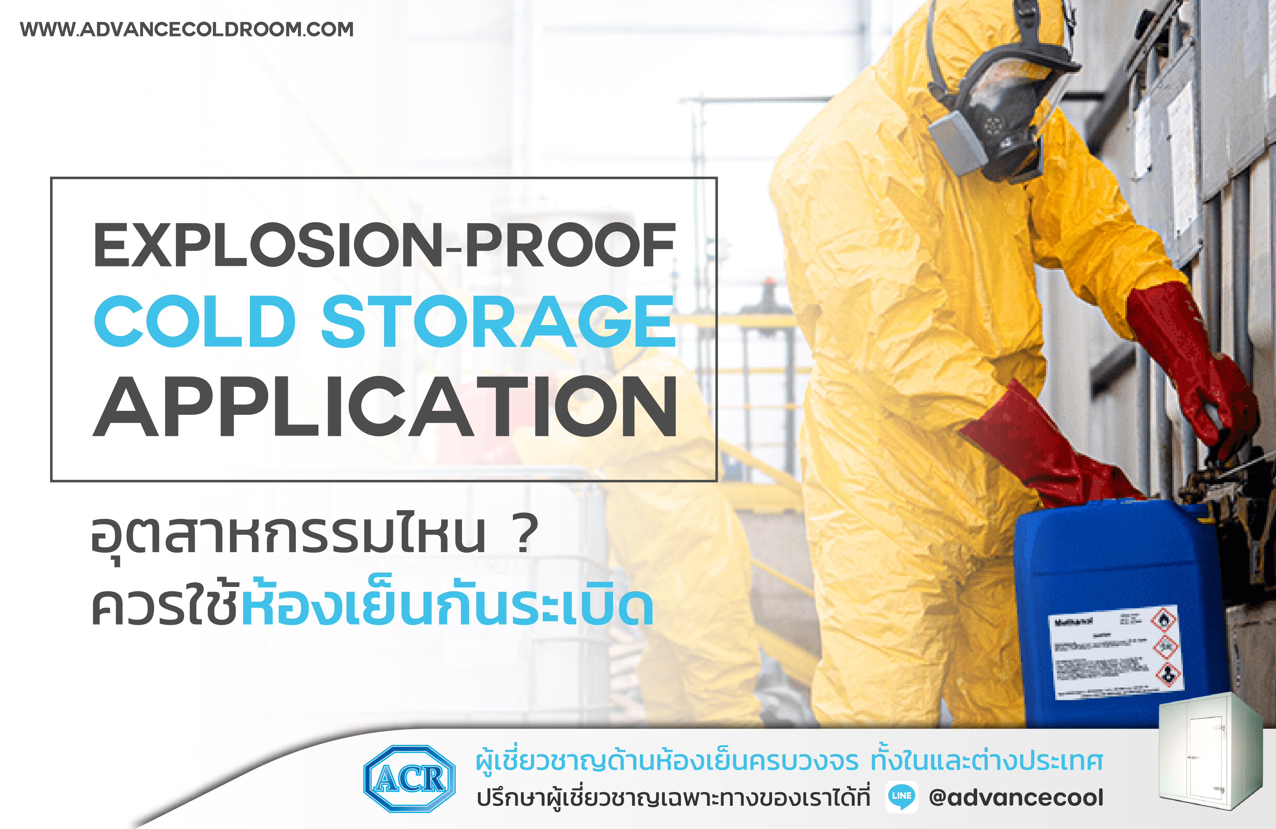 Explosion Proof Cold Room หรือ ห้องเย็นป้องกันระเบิด ถูกออกแบบมาเพื่อจัดเก็บผลิตภัณฑ์ สารเคมี ที่มีความเสี่ยงต่อการระเบิด หรือ การเผาไหม้ แม้อยู่ในสภาพแวดล้อมที่เย็น