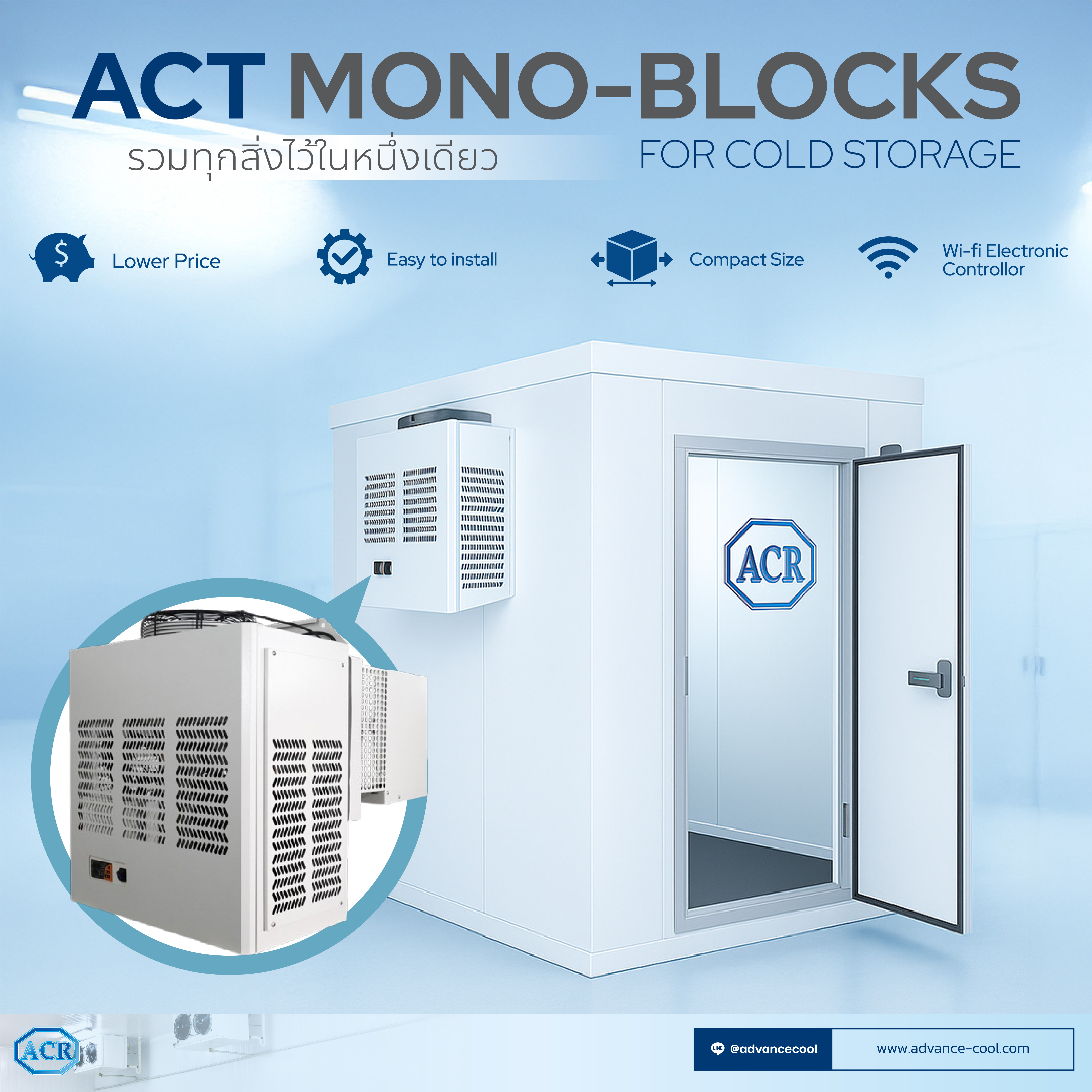 ACT Mono-Blocks เข้ามาตอบโจทย์ในฐานะ “โมโนบล็อกห้องเย็น” แบบเสียบปลั๊กที่พร้อมใช้งานทันที ไม่ต้องรื้อระบบ ไม่ต้องเดินท่อ และสามารถเปลี่ยนทดแทนได้ตลอดเวลา