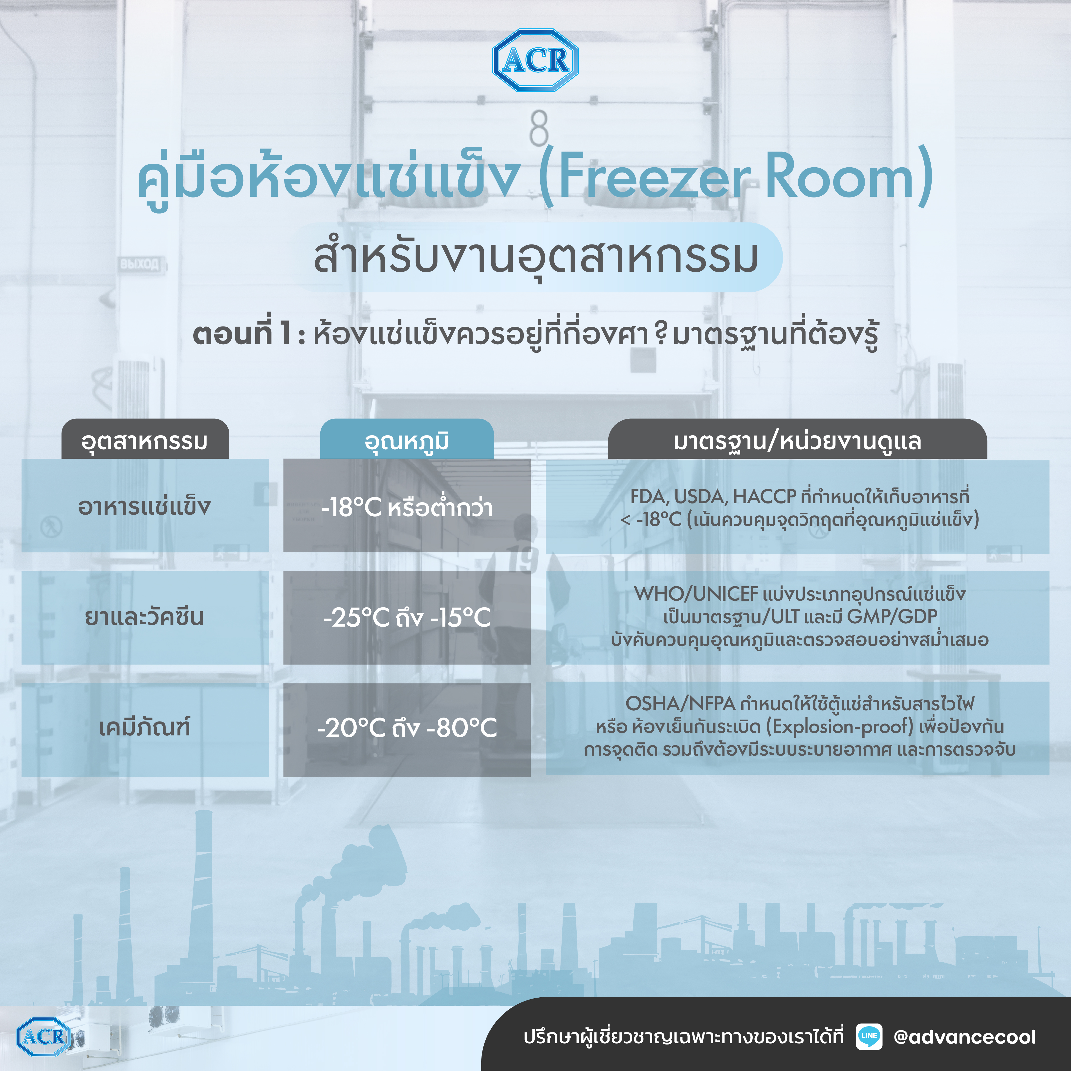ห้องแช่แข็งไม่ใช่เพียงพื้นที่ที่ ทำให้เย็นที่สุดเท่าที่จะทำได้ แต่เป็น โครงสร้างพื้นฐานเชิงกลยุทธ์ ที่เชื่อมโยงคุณภาพสินค้า ความปลอดภัย มาตรฐานกำกับดูแล และต้นทุนพลังงานเข้าด้วยกันอย่างแยกไม่ออก
