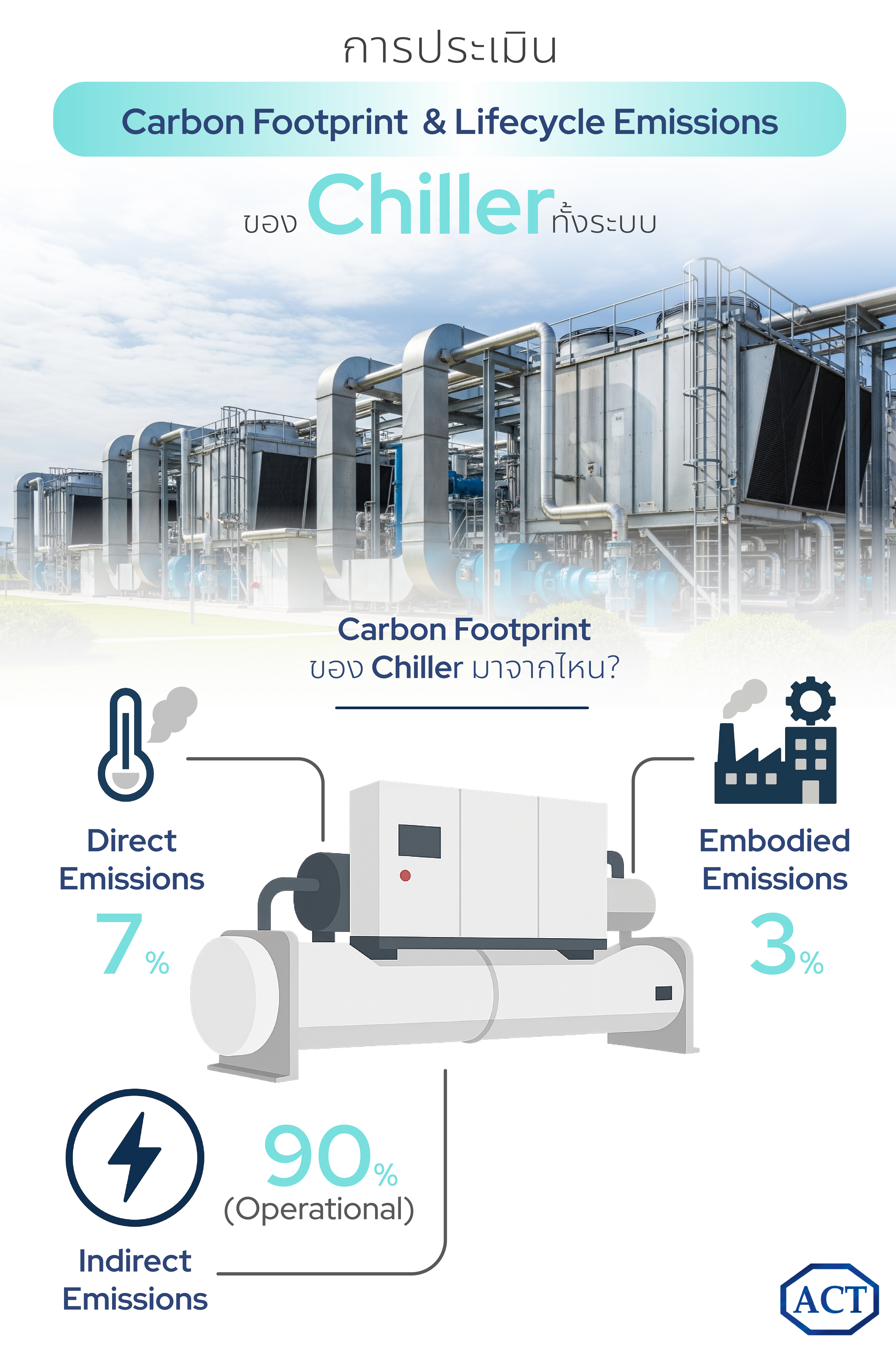 การประเมินคาร์บอนฟุตพรินต์ของระบบชิลเลอร์ มักดำเนินการภายใต้กรอบของการประเมินวัฏจักรชีวิต หรือ LCA (Life Cycle Assessment) ตามมาตรฐานสากล เช่น ISO 14040/14044 เปรียบเสมือนการ "แกะรอย" ทุกขั้นตอนในชีวิตของ Chiller ตั้งแต่เกิด